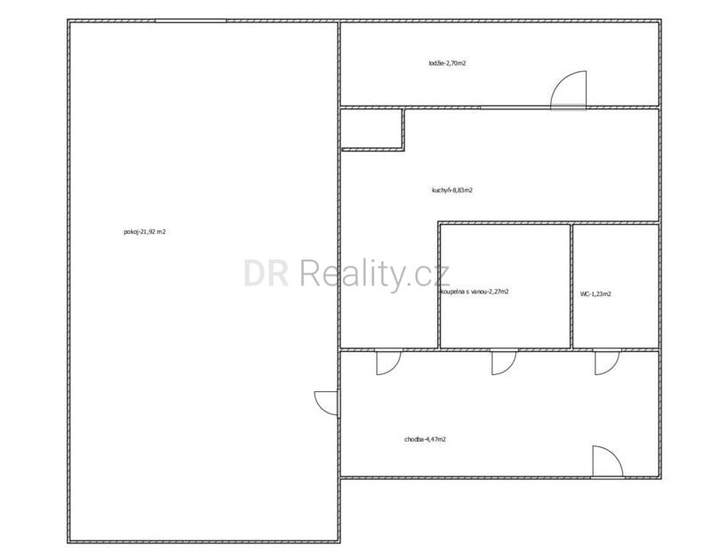 prostorného pokoje a kuchyně se vstupem na lodžii.