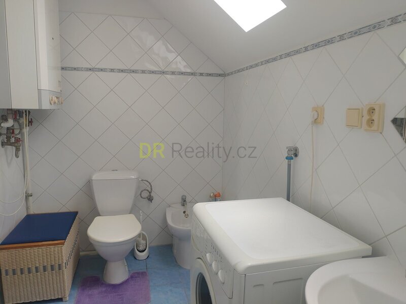 kuchyň, obývací pokoj, samostatné WC, v patře ložnice, koupelna s WC.